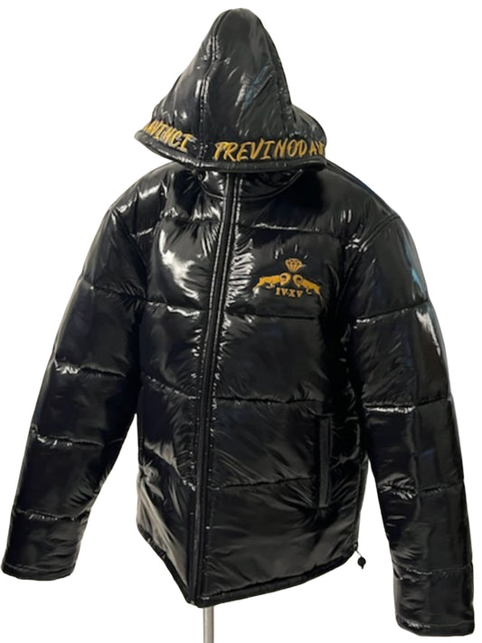 Men's Wind Resistant Glossy Hooded Puffer Coat (ASK ABOUT CUSTOMIZABLE COLORS)